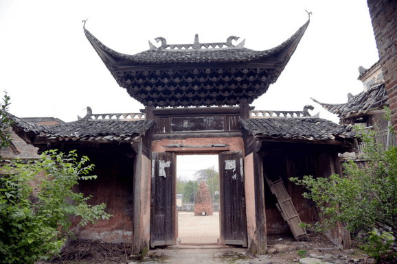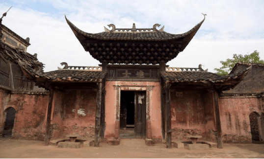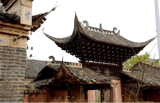 鸟瞰牌楼像是一把巨型“太师椅”,柱网廊墙“工王字”基础布局,重合正好是一个“王”字。主次三楼高低错落,形似体态宽大的“太师椅”靠背。环抱式的两侧影壁墙好似椅扶手,牌楼、影壁墙连成一片,形成一个三折的大围屏,负阴抱阳明堂与前,正面看似穿戴官帽的巨人稳坐与“太师椅”上,可见先人们在建造设计时的用心,既增加祠堂的威仪,又寄寓宗族人丁兴旺,人才辈出的期冀。