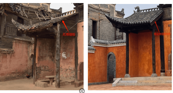 ▲修缮前与修缮后增设博缝板构件对比图