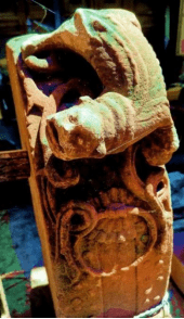 ◄鼓顶瑞兽“椒图”残损