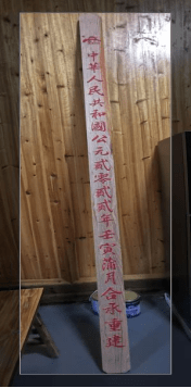大清光绪年间的梁上题记墨迹全无,隐约只能看到文字痕迹,由王小骏会长选上好的烟墨亲自书写恢复了题记,并把本次修缮的题记,选了上好的红木材质书写雕刻上朱色后,一起和老题记安于主楼脊桁上以供后人考证。原杉木材质的进士匾额风化糟朽,留存作为古村文物收藏。另选四川楠木复制更换了匾额,用朱砂描书了题字落款。